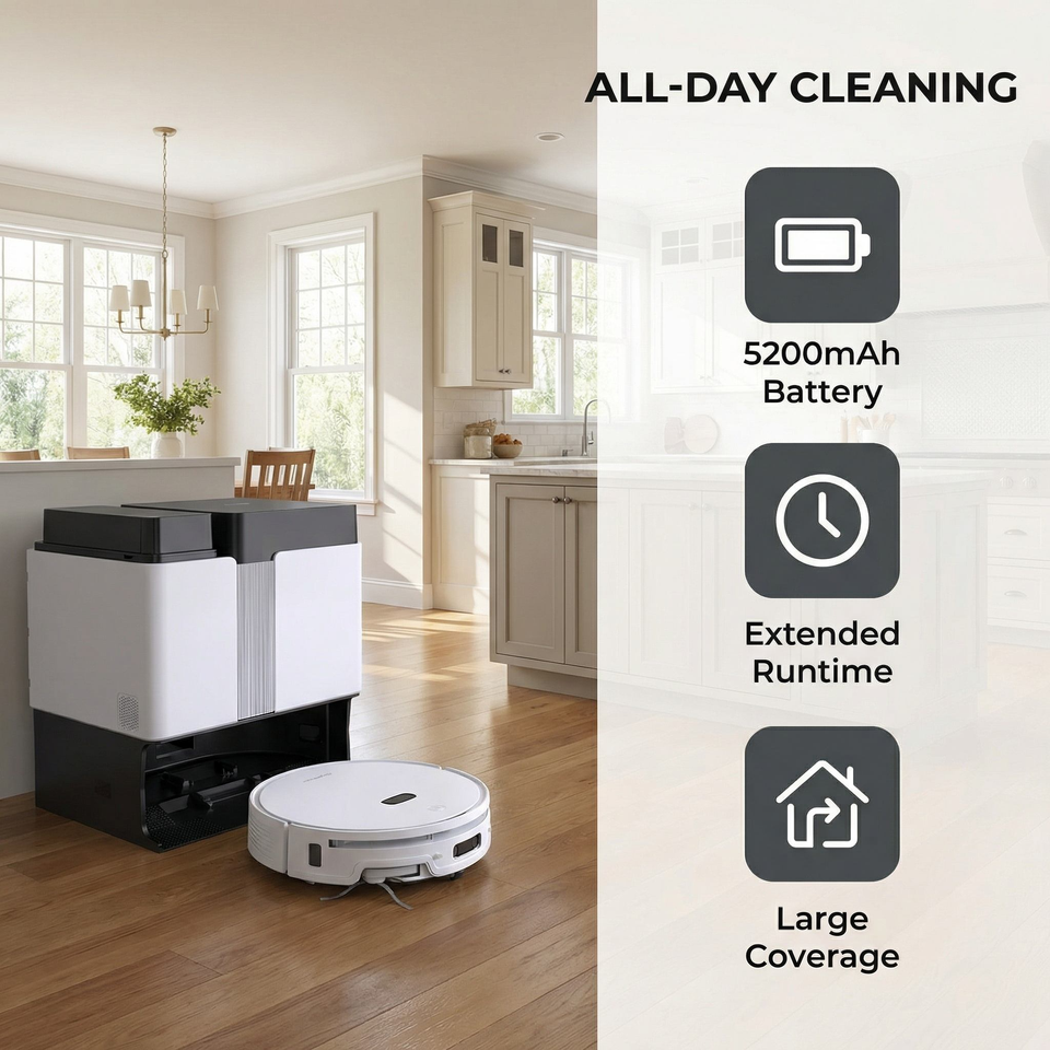 หุ่นยนต์ดูดฝุ่นและถูพื้นรุ่นใหม่ของแท้ พร้อมแรงดูด 20000pa ฐานชาร์จอัจฉริยะ หุ่นยนต์ทำความสะอาดอัจฉริยะ