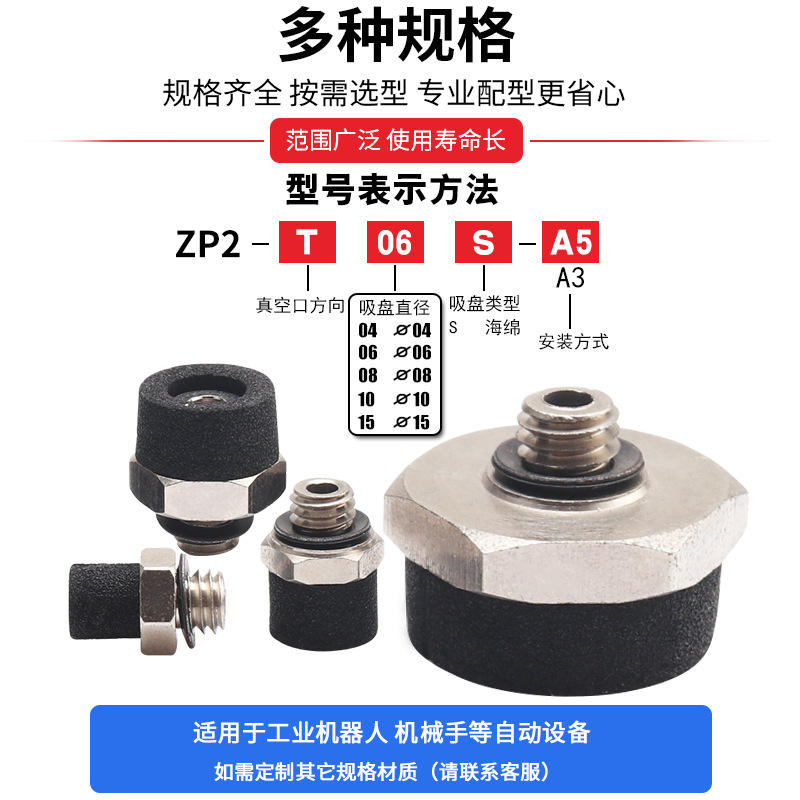 แขนหุ่นยนต์ดูดสุญญากาศอุตสาหกรรม จุกดูดสปองจ์นิวเมติกทรงพลัง รุ่น ZP2-T04S/06S/08S/10S/15SGS สำหรับอุตสาหกรรมการเกษตร