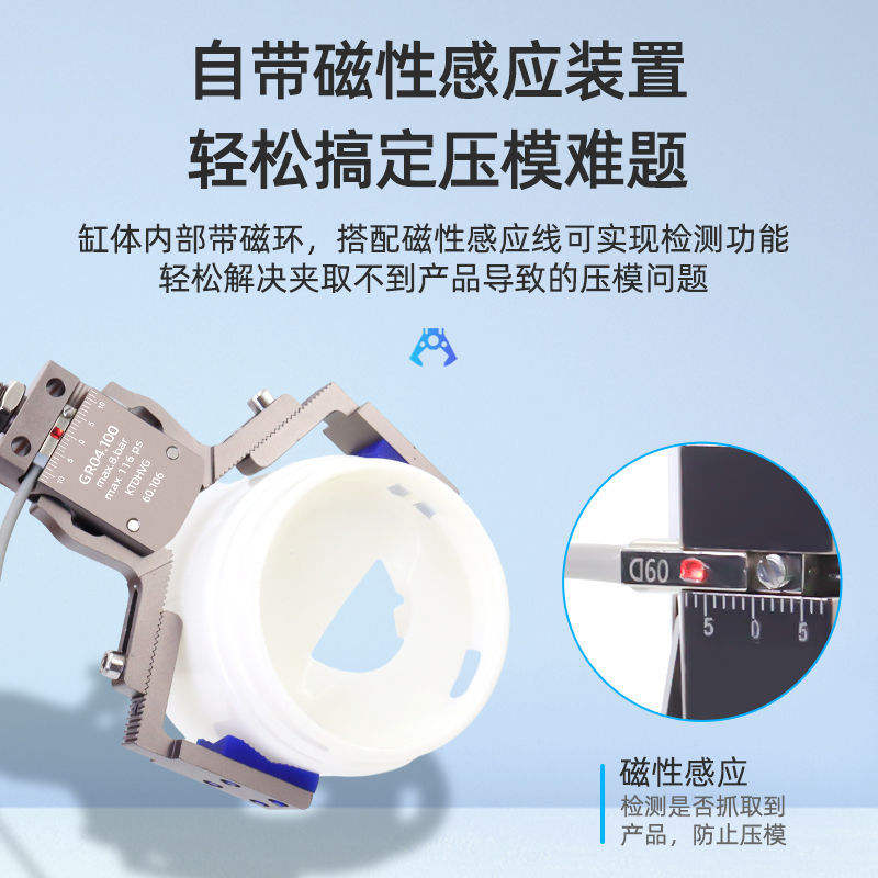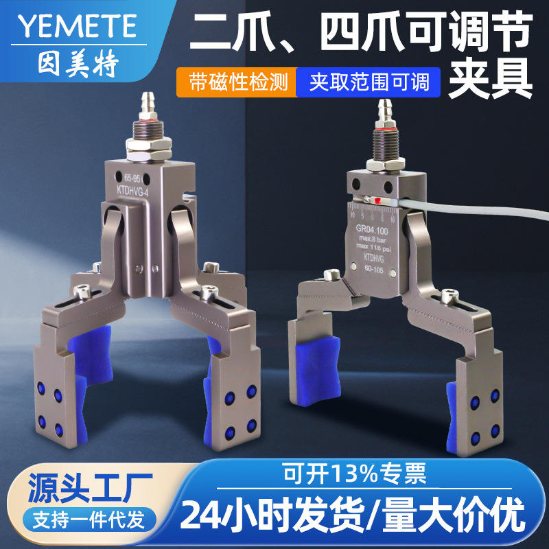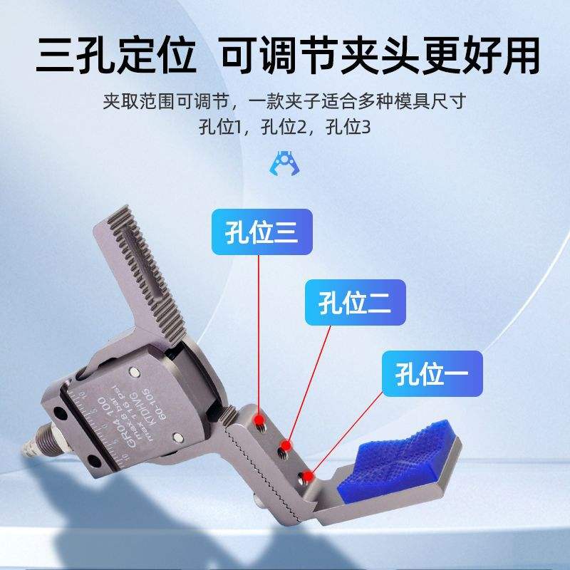 อุปกรณ์เสริมเครื่องฉีดพลาสติกแบบแขนหุ่นยนต์ ตัวหนีบปรับระยะชักได้ ตัวหนีบตรวจจับแบบสองขากรรไกรและสี่ขากรรไกร ตัวหนีบขยายพิเศษ