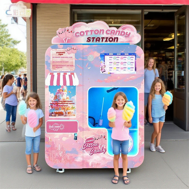 เครื่องทำขนมสายไหมเครื่องทำขนมสายไหมสำหรับงานปาร์ตี้หุ่นยนต์ขนาดเล็กอัตโนมัติเต็มรูปแบบ
