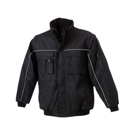 แจ็กเก็ตทำงานขนเป็ดแข็งแรงมีปกเสื้อมีฮู้ดและปิดด้วยซิปกันน้ำและมีลวดลายตกแต่งแขนที่ถอดออกได้