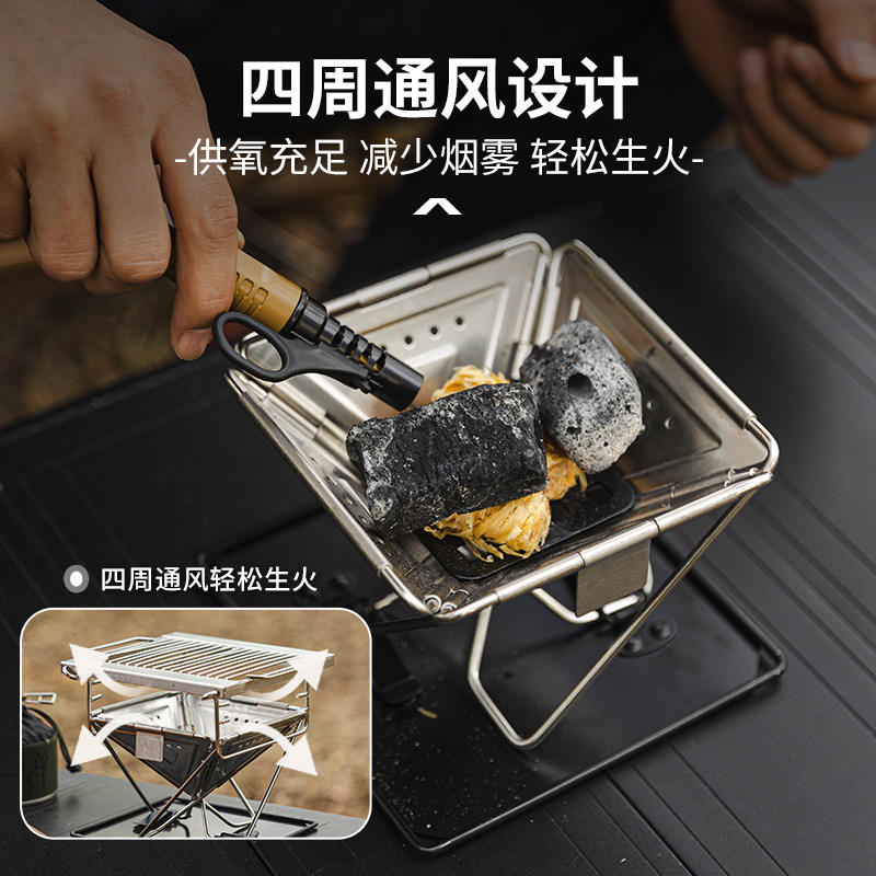 เตาบาร์บีคิวพับได้แบบพกพา ทำจากสแตนเลสขนาดเล็ก ใช้ฟืน เหมาะสำหรับตั้งแคมป์กลางแจ้ง อุปกรณ์ให้ความร้อนสำหรับปิ้งย่าง