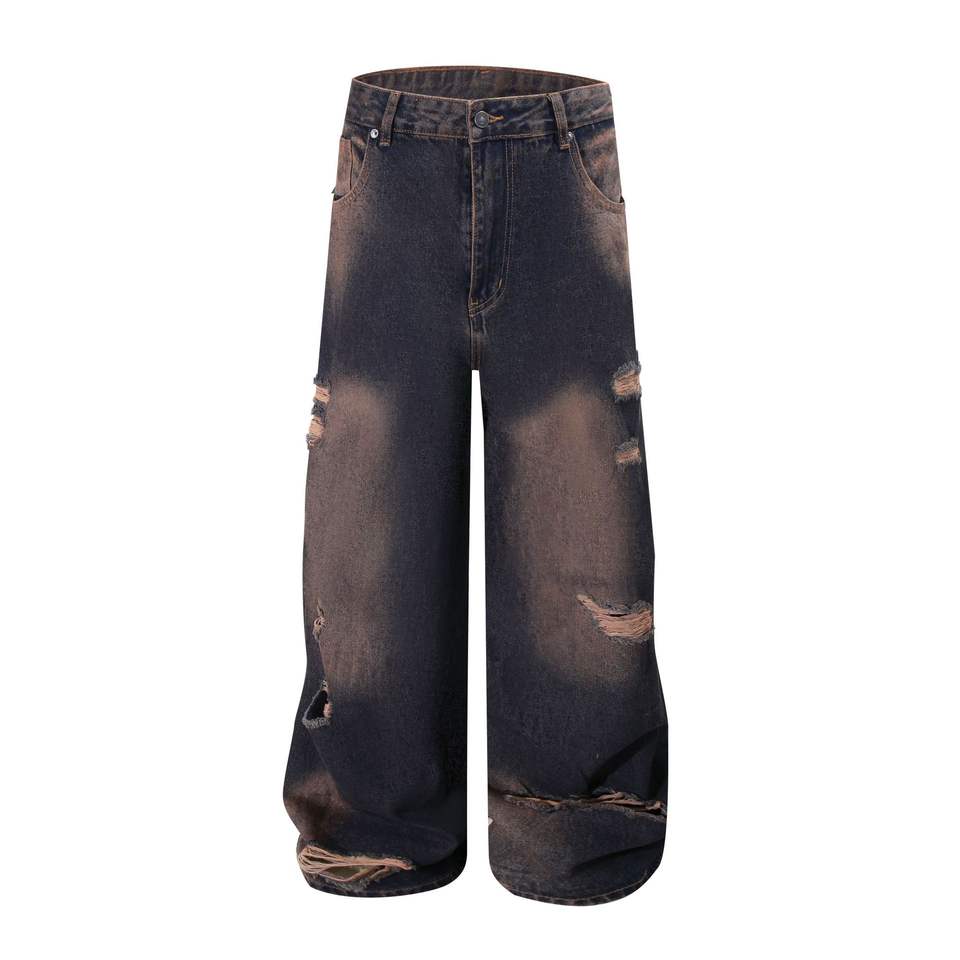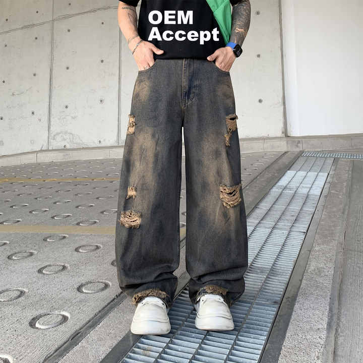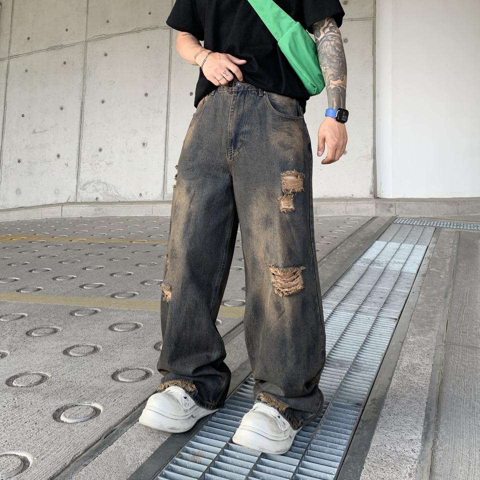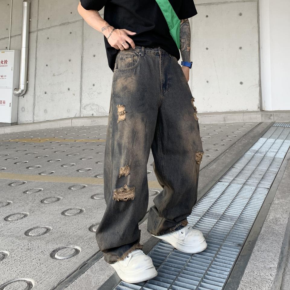 กางเกงยีนส์ทรงบูทคัทผู้ชาย Rock Rivals สไตล์สตรีทแวร์ ฮิปฮอป ลำลอง ขากว้าง ล้างสีแบบสโตนวอช ทรงหลวม ทรงตรง แฟชั่นสำหรับผู้ชาย