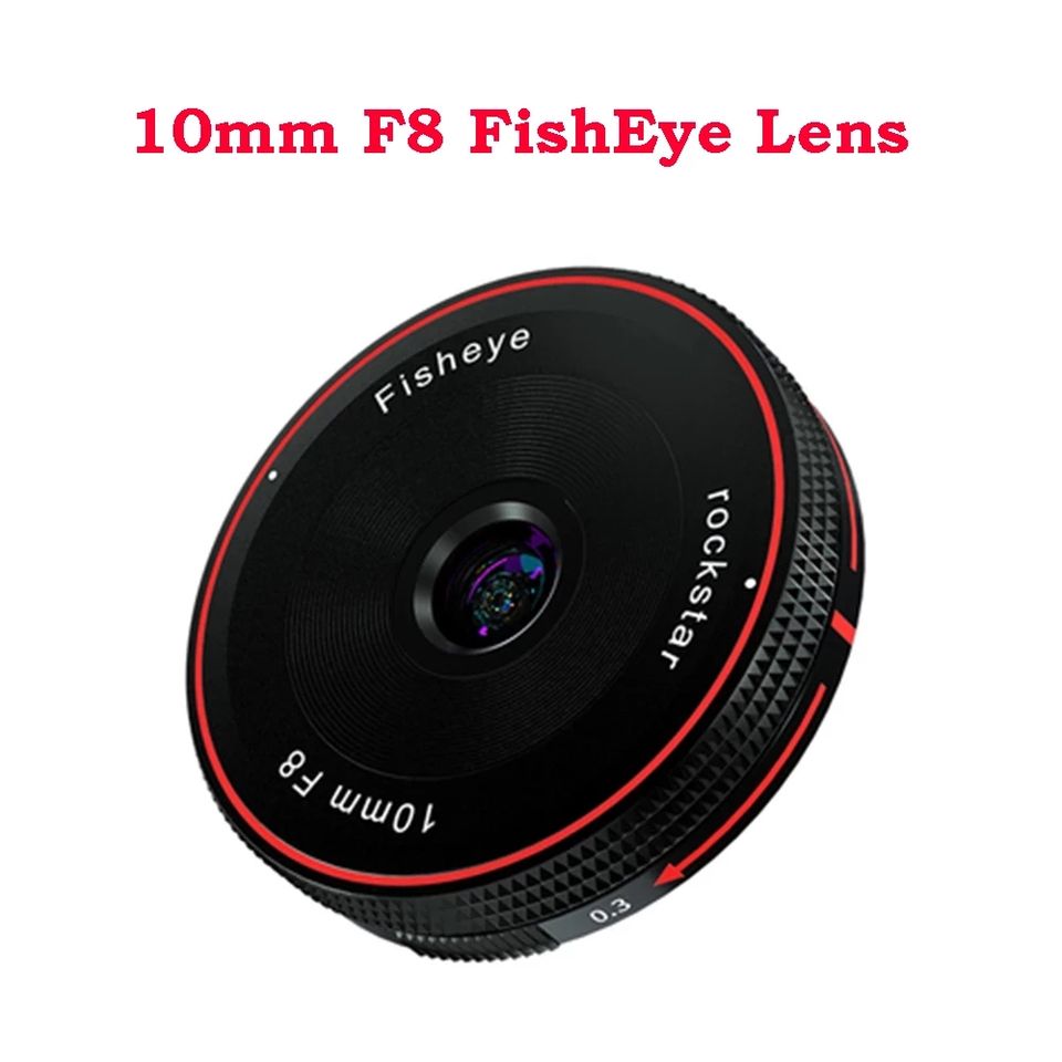 Rock Star RockStar เลนส์ฟิชอาย10มม. F8,เลนส์มุมกว้างพิเศษโฟกัสคงที่สำหรับ Sony E Fuji X M4/3 Canon Eos M Nikon Z Mount