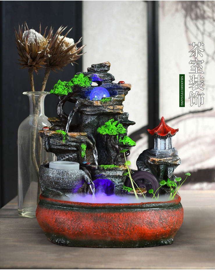 เครื่องประดับหินทำจากเรซินของฮวงจุ้ยสำหรับสร้างความมั่งคั่งน้ำไหลของตกแต่งบ้านสำนักงานห้องนั่งเล่น
