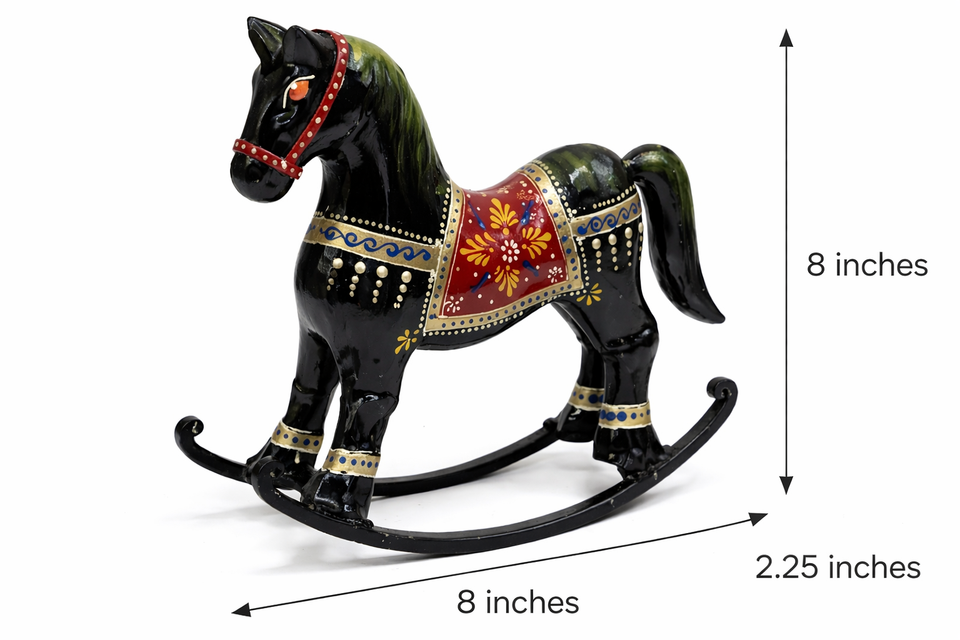 ม้าโยกเหล็กตกแต่งรักษ์โลกสำหรับบ้าน สำนักงาน ห้องเด็ก วางบนโต๊ะ-ของขวัญทำมือที่ทนทานสำหรับตกแต่งภายใน