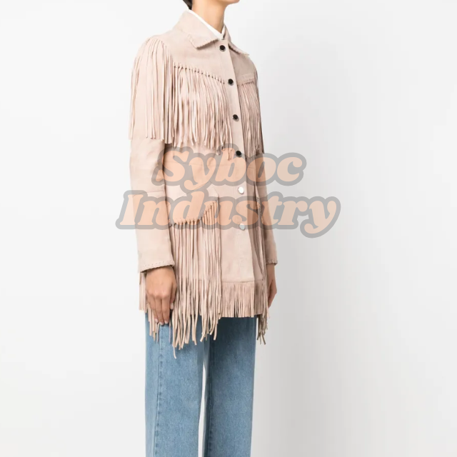 แจ็คเก็ตหนังมีพู่สำหรับผู้หญิง