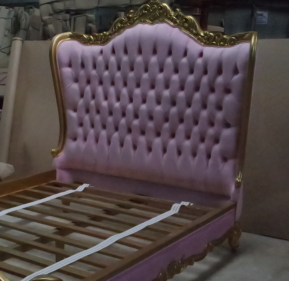 Rococo Tufted Magie Bed , French Country Bedroom Furniture Gold