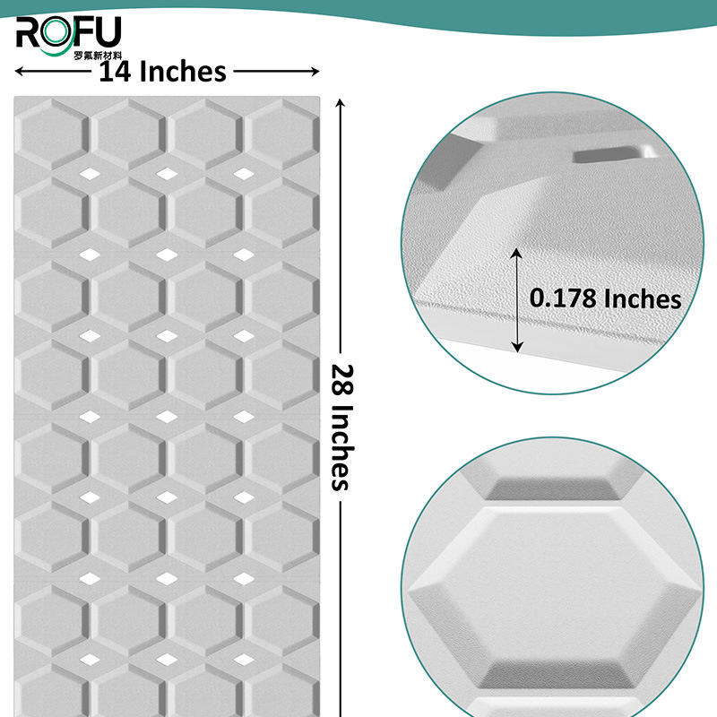 แผ่นรองอาบน้ำซิลิโคนรูปสี่เหลี่ยมผืนผ้ากันลื่นพร้อมถ้วยดูดสำหรับอ่างอาบน้ำและฝักบัวดีไซน์เรียบง่ายทำความสะอาดง่าย