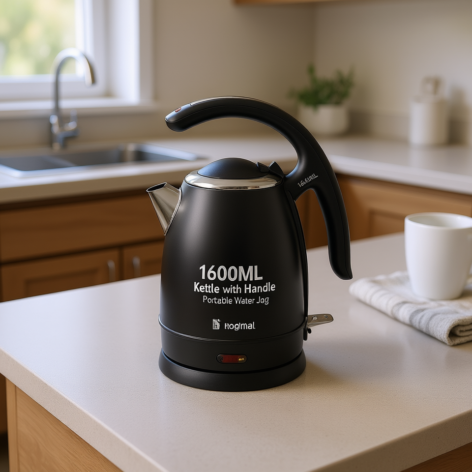 กาต้มน้ำไฟฟ้าแบบพกพาพร้อมหูจับ ขนาด 1600 มล. สำหรับใช้ในครัว