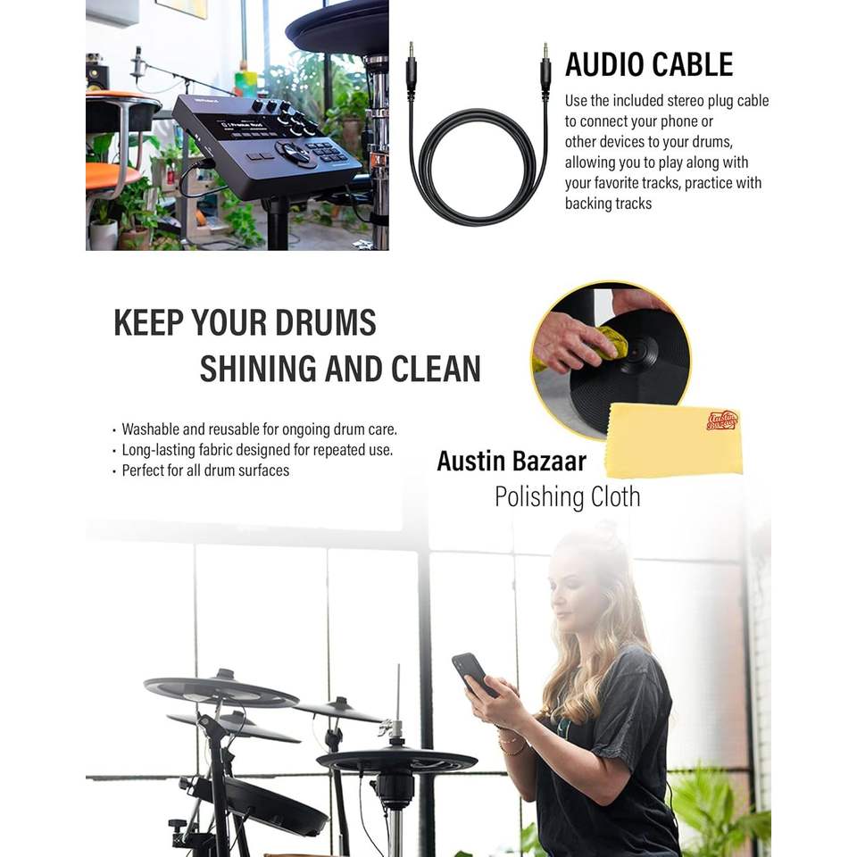 ชุดกลองอิเล็กทรอนิกส์ Roland TD-07KV พร้อมสายสัญญาณเสียงขนาด 3.5 มม. กระเป๋าใส่ไม้กลองโพลีเอสเตอร์ ไม้กลอง 3 คู่