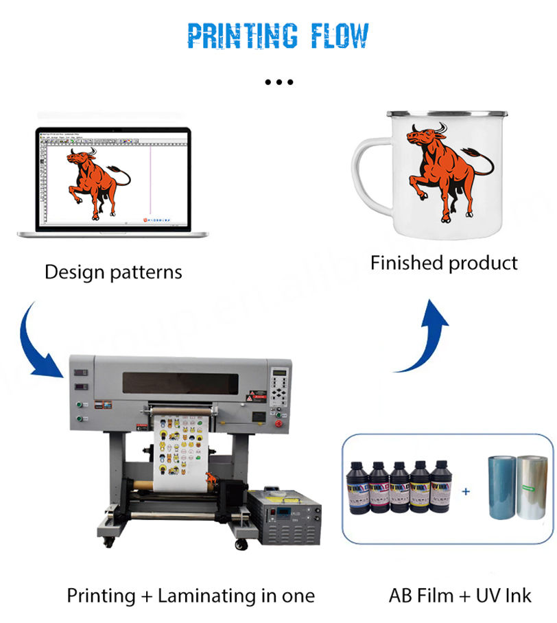 เครื่องพิมพ์ DTF UV แบบม้วนมีหัวพิมพ์ I3200ขนาดเล็ก30ซม. 2 in 1 A3 UV DTF impresora พร้อมลามิเนตสำหรับสติกเกอร์