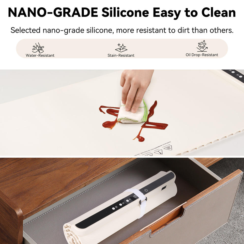 แผ่นอุ่นอาหารไฟฟ้าแบบพกพา ม้วนเก็บได้ 3 ระดับอุณหภูมิ ให้ความร้อนทั่วพื้นผิว ผลิตจากซิลิโคน สำหรับใช้ในครัวเรือน