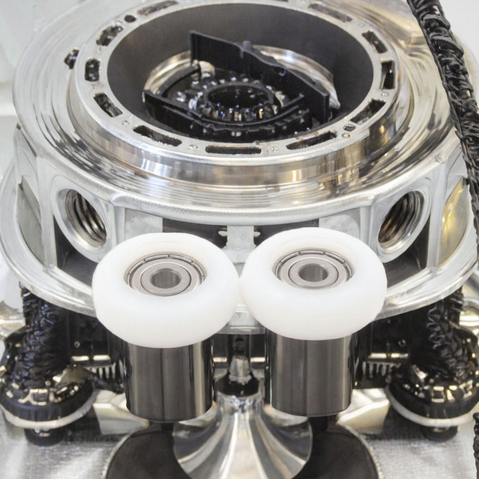 ล้อไนลอน PU หุ้มเหล็กกล้าไร้สนิม S420 พร้อมลูกปืน S626ZZ สายพานกลม 6x32x11 มม. สำหรับประตูบานเลื่อนร้านขายเสื้อผ้า