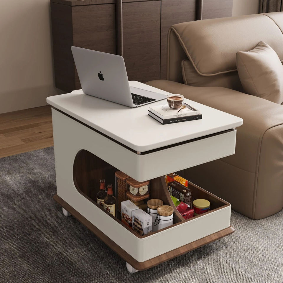 โต๊ะกาแฟปรับระดับความสูงได้ โต๊ะข้างอเนกประสงค์ พร้อมล้อเลื่อน ดีไซน์ทันสมัย สวยงาม สำหรับใช้ในบ้าน