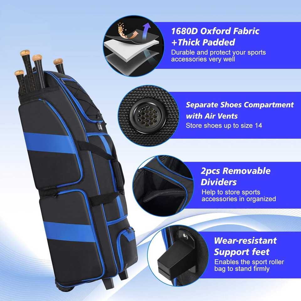 กระเป๋าใส่อุปกรณ์เบสบอลแบบล้อเลื่อน Bagnex วัสดุ 600D ความจุ 50-70 ลิตร ซิปเรียบ ทนทาน กันน้ำ ล้อลาก โลโก้สั่งทำได้ ใช้ได้ทั้งชายและหญิง
