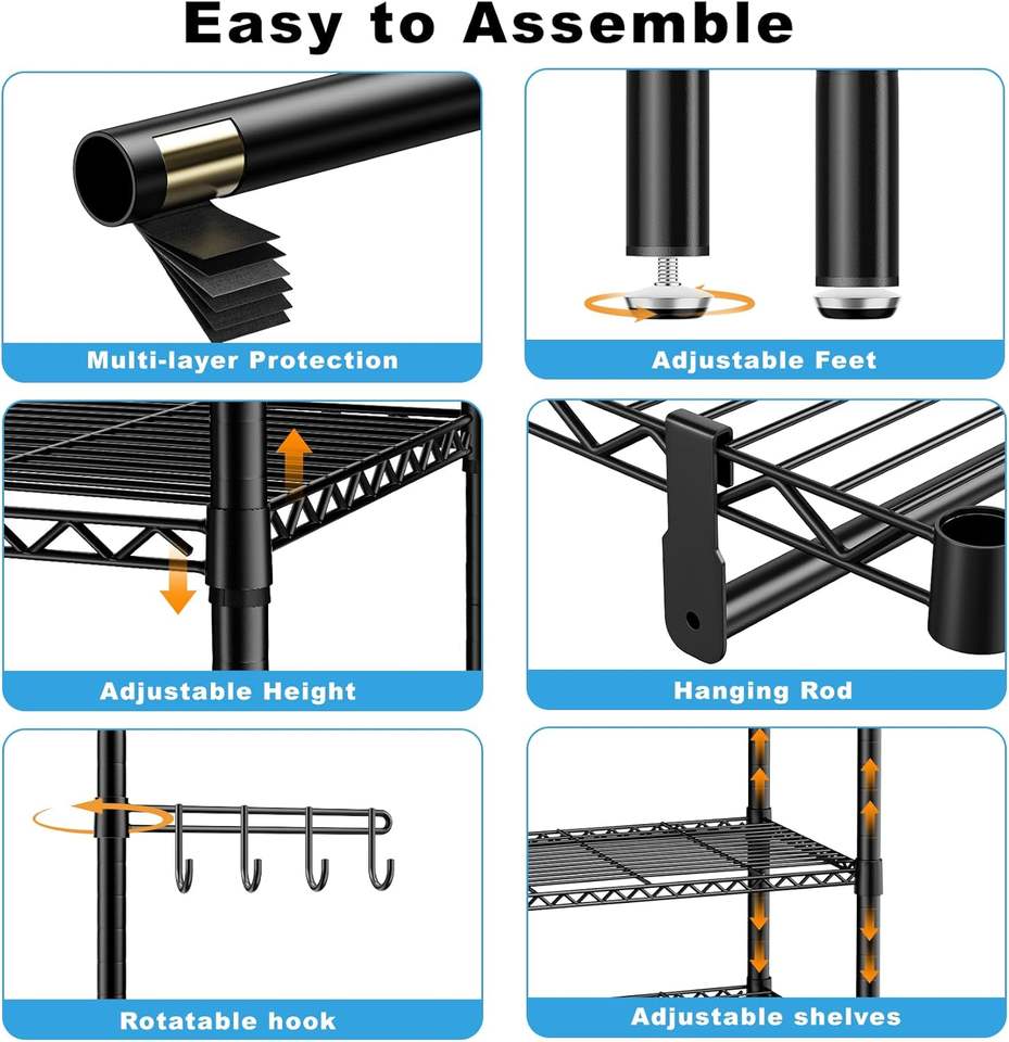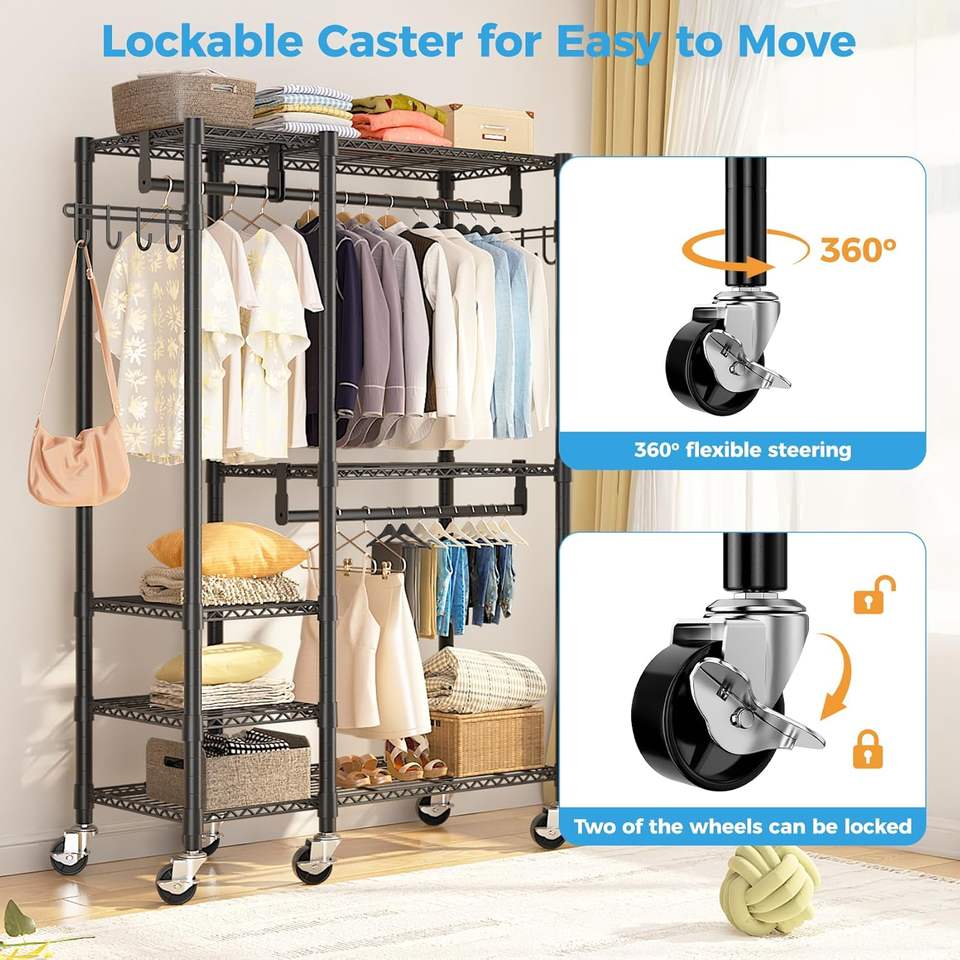 ราวแขวนผ้าแบบเคลื่อนย้ายได้ 5 ชั้น แข็งแรง ทนทาน พร้อมราวแขวนคู่และตะขอข้าง ตู้เสื้อผ้าแบบตั้งพื้น ขนาด 45x17.1x76.4 นิ้ว