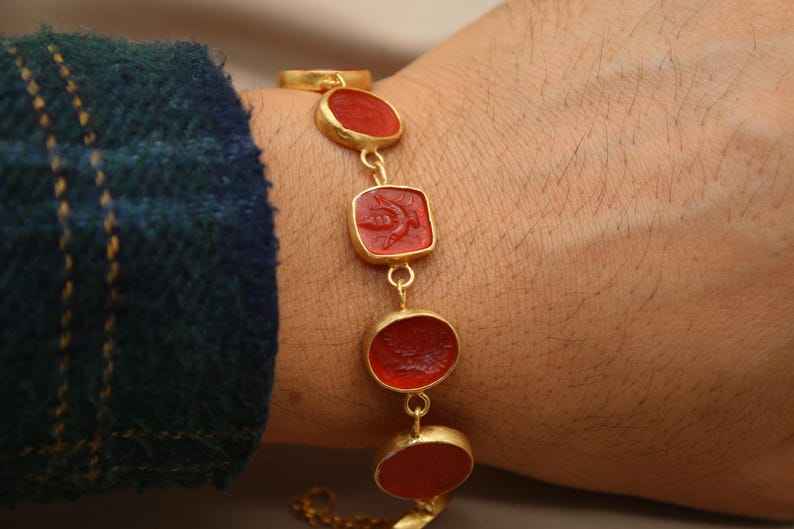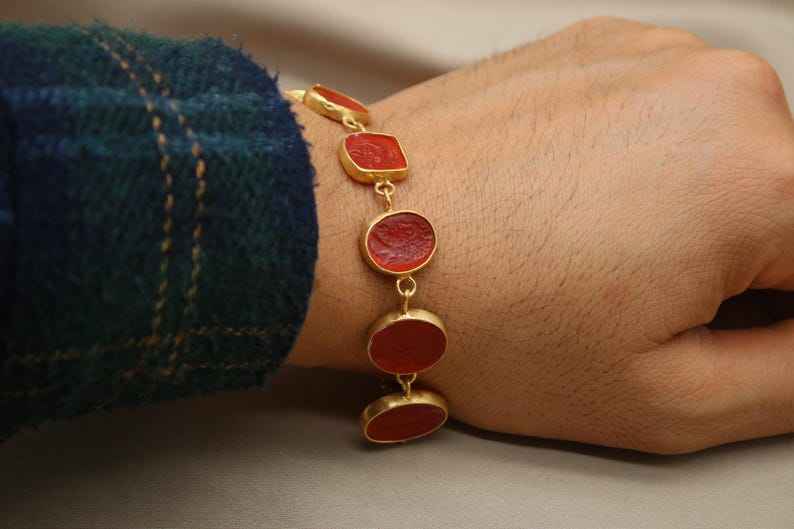 กำไลข้อมือหินธรรมชาติรูปทรงโรมันอินแทลโล่ งานแฮนด์เมด คุณภาพพรีเมียม สไตล์คลาสสิกวินเทจ เครื่องประดับกรีก ของขวัญวันแม่