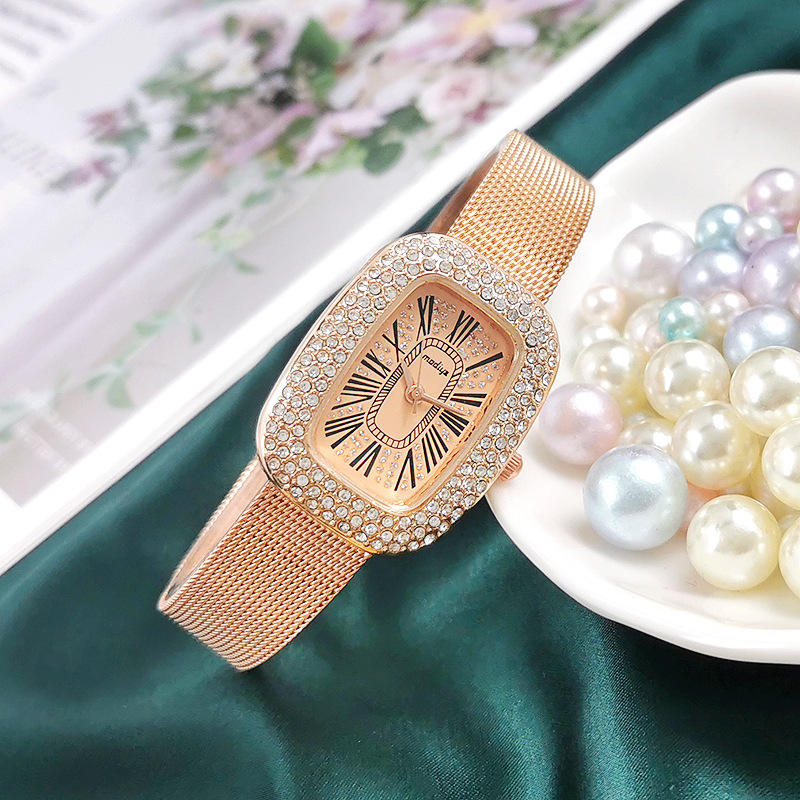 นาฬิกาควอตซ์ตัวเลขโรมันที่ทันสมัยและเป็นที่นิยมมีเพชรเน้นนาฬิกาผู้หญิง