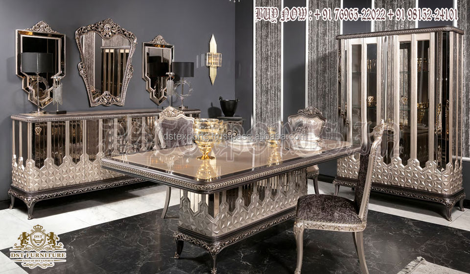 ชุดโต๊ะอาหารและเก้าอี้แกะสลักสไตล์โรมาเนีย เฟอร์นิเจอร์ห้องอาหารดีไซน์หรูหรา ขายส่งเฟอร์นิเจอร์แกะสลักสำหรับห้องอาหาร