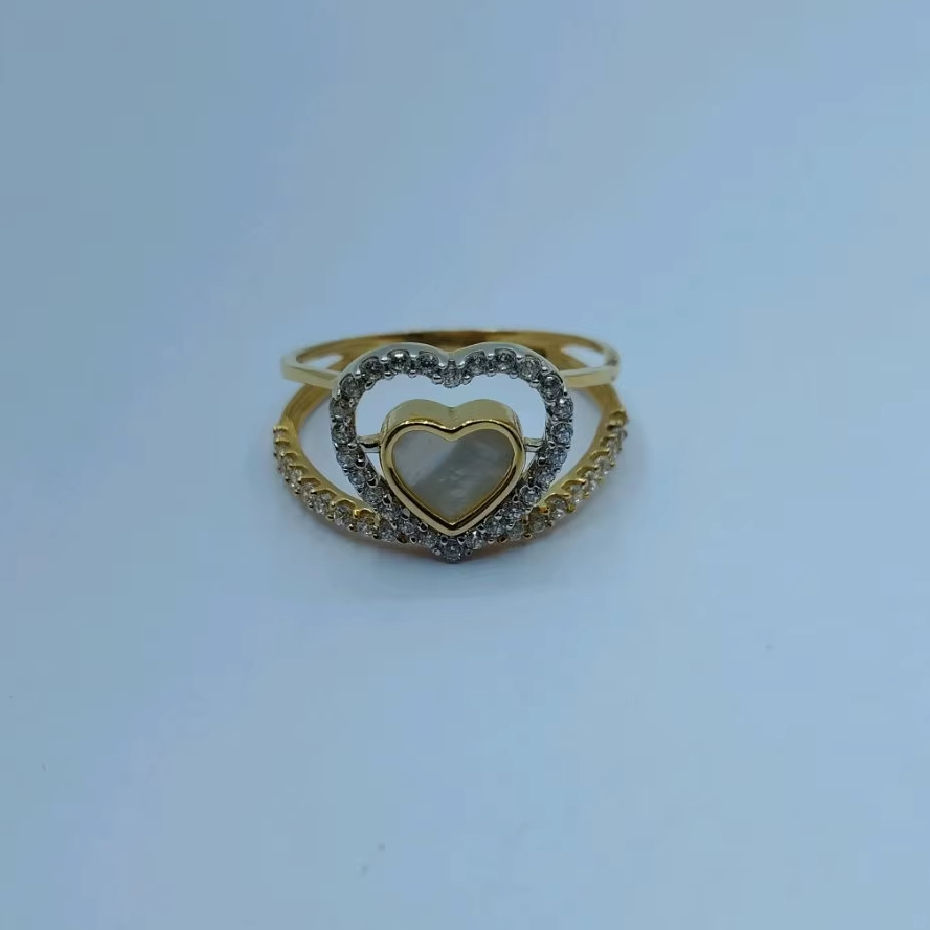 แหวนทองคำ 22K รูปหัวใจคู่ ดีไซน์ประดับมุกและเพชร CZ ล้อมรอบ แหวนทองคำแท้ 916 ชุบหลายชั้น ขายส่งเครื่องประดับ