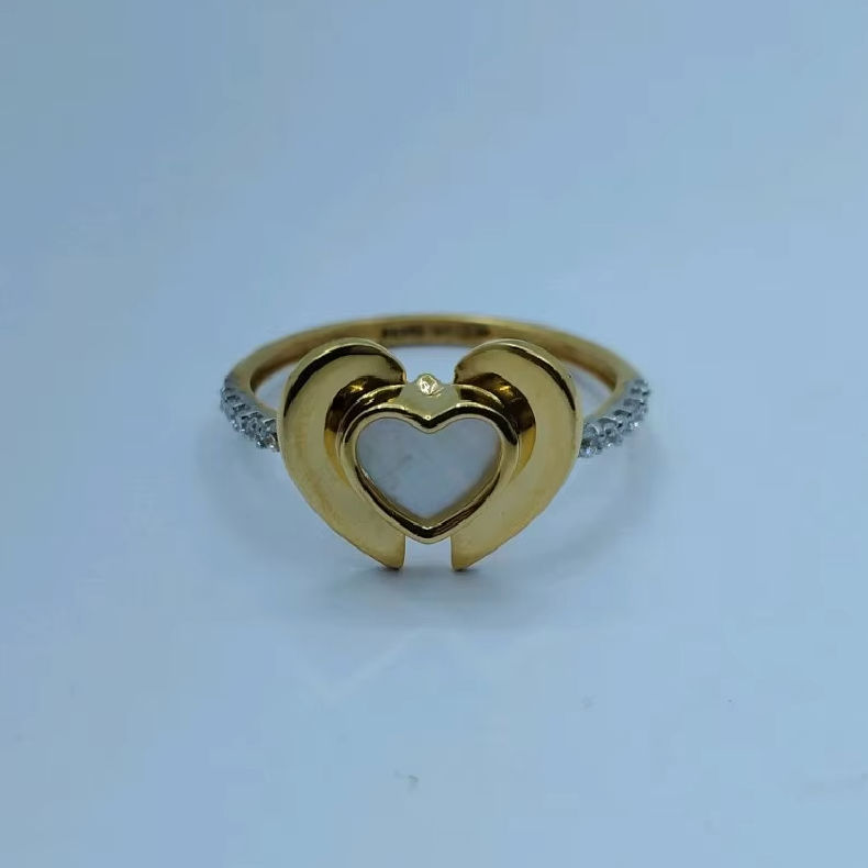 แหวนทองคำ 22K รูปหัวใจสุดโรแมนติก | ดีไซน์รูปหัวใจประดับมุกแบบซ้อนกัน | ลายวงแหวนเคลือบทอง ของขวัญแต่งงานและวันครบรอบสุดหรู
