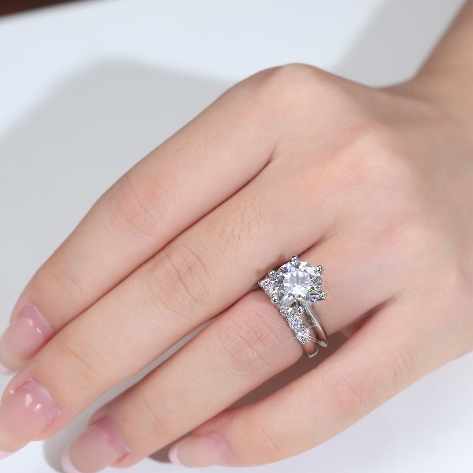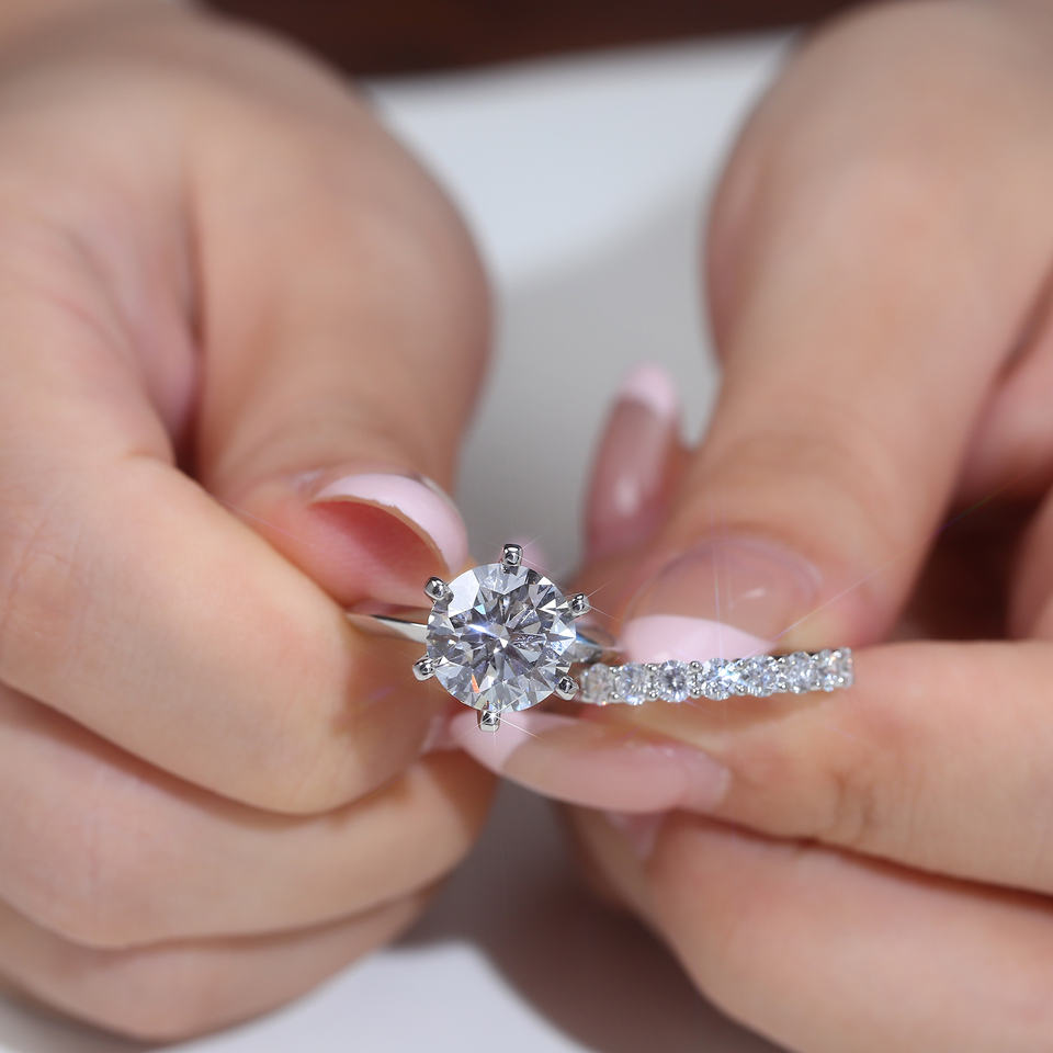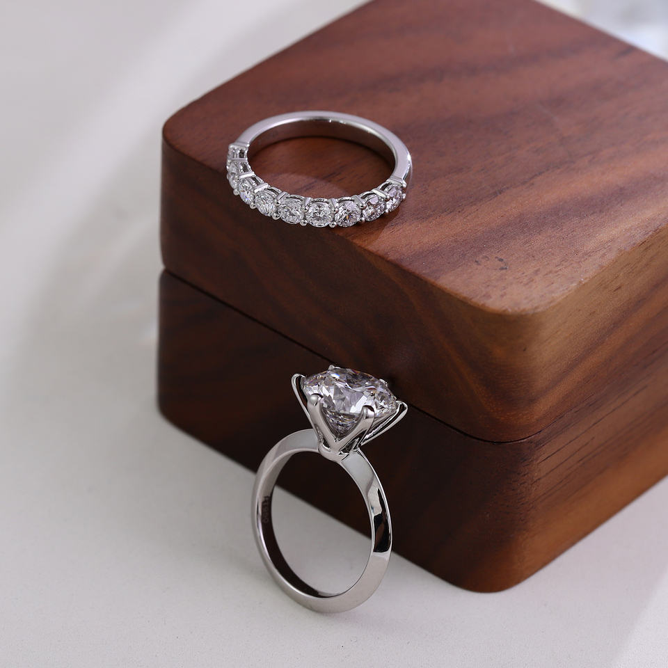 แหวนเพชรทรงกลม 5 กะรัต เพชรเลี้ยงในห้องปฏิบัติการ ตัวเรือนทองคำขาว 950 แหวนแต่งงานและแหวนหมั้นเพชรนิรันดร์สำหรับคู่รัก
