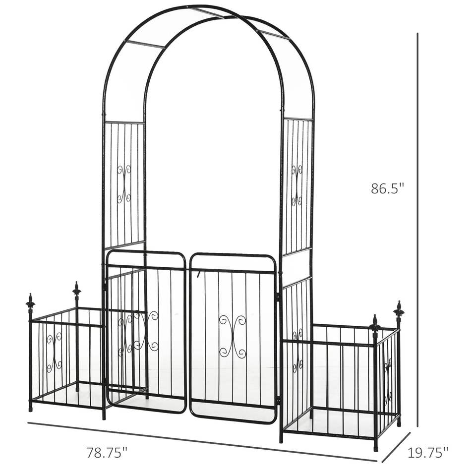 ซุ้มประตูสวนโลหะขนาด 86 นิ้ว ดีไซน์โรแมนติก พร้อมกระถางสีดำสำหรับปลูกไม้เลื้อย ใช้เป็นรั้วตาข่ายและประตู