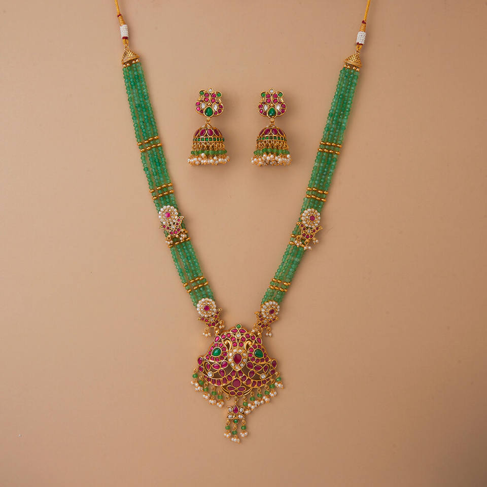 ชุดจี้ยาวเคลือบสีทองแบบโบราณโรแมนติกพร้อมไข่มุกเครื่องประดับแฟชั่นอินเดียขายส่ง