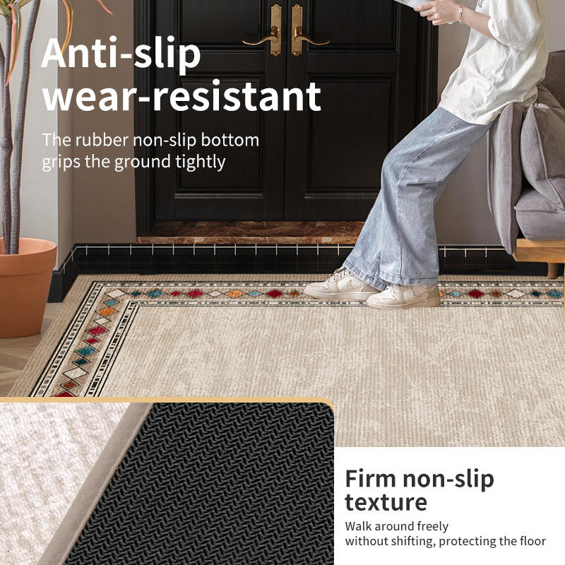 พรมเช็ดเท้าลายเรขาคณิตผ้าฝ้ายใยไผ่แบบโรแมนติก รูปทรงสี่เหลี่ยมผืนผ้า กันลื่น สำหรับทางเข้าบ้าน