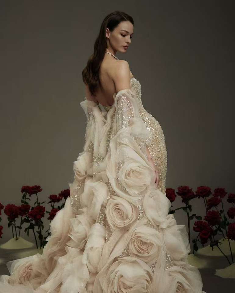 เสื้อแจ็กเก็ตแฟชั่นสำหรับเจ้าสาวน่ารักลายดอกกุหลาบขนาดใหญ่โรแมนติกสำหรับปาร์ตี้งานแต่งงาน