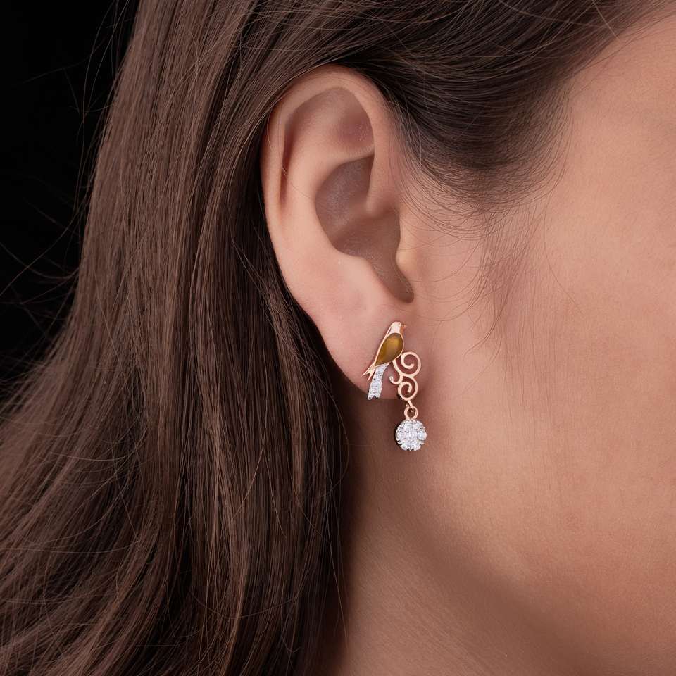 Romantic Bird Diamond 18KT Gold Earrings by ShivPath for Women-for Gifts Parties Engagements & Anniversaries