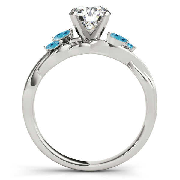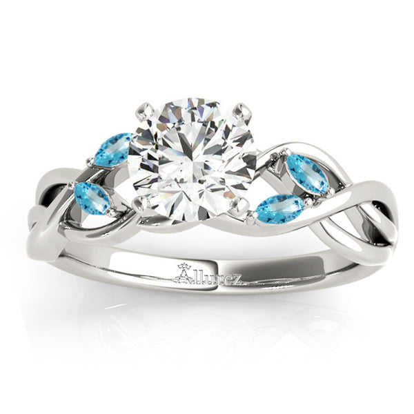 แหวนหมั้นทรงมาร์ควิส โทแพซสีน้ำเงินโรแมนติก 0.20 กะรัต ดีไซน์ใบไม้พันกัน แพลตตินัมชุบโรเดียม สไตล์เรขาคณิตโดดเด่น