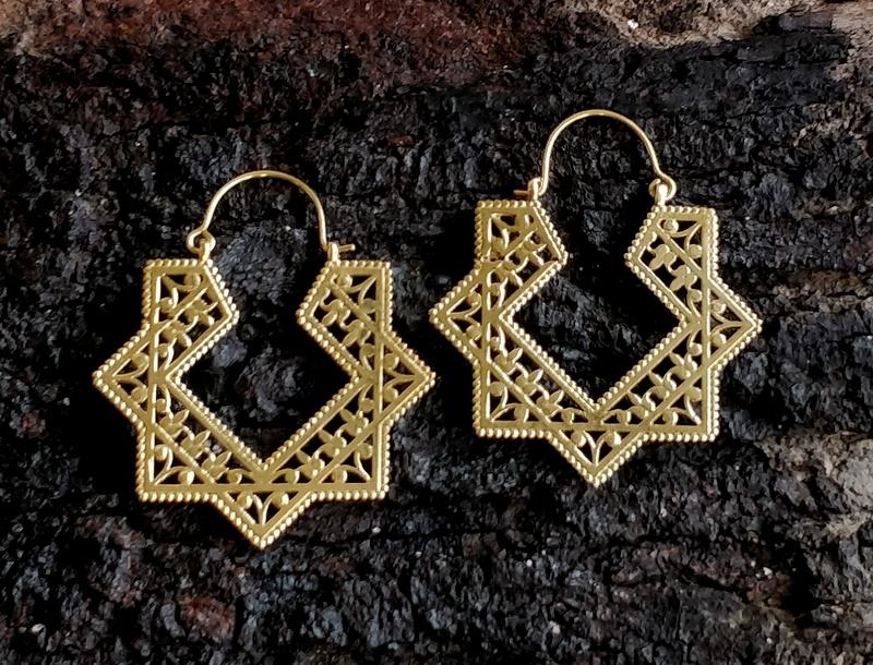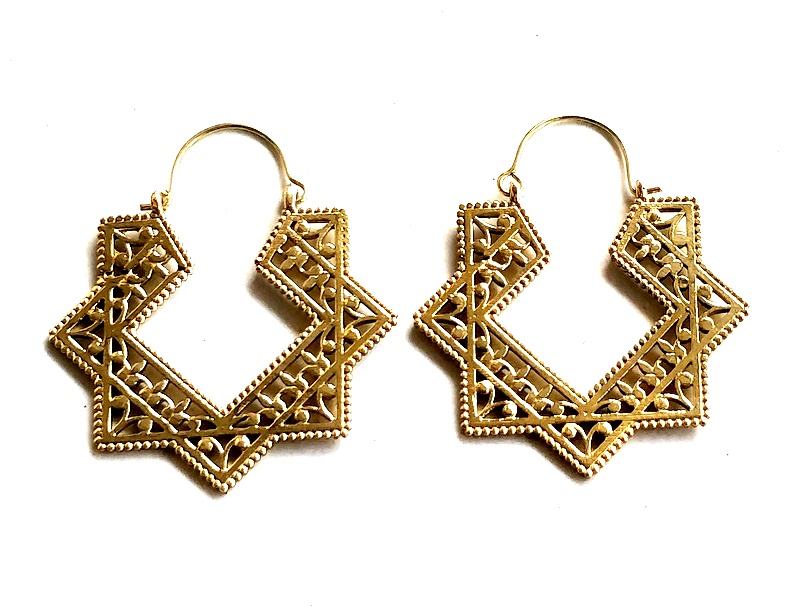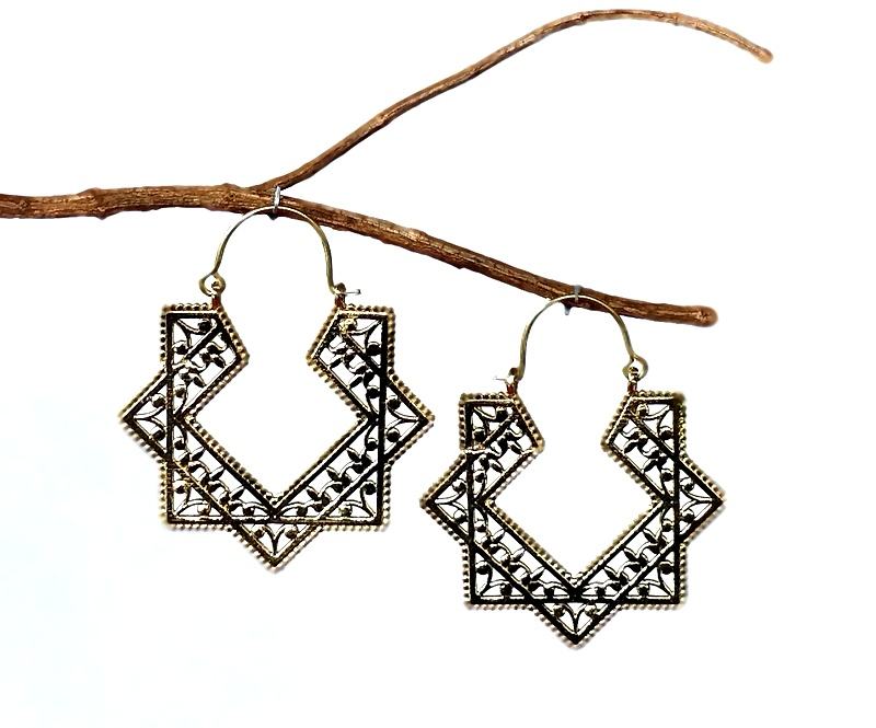 ต่างหูทองเหลืองชุบทองสไตล์โบฮีเมียนโรแมนติกสำหรับผู้หญิงเครื่องประดับห่วงหกเหลี่ยมสวยงาม