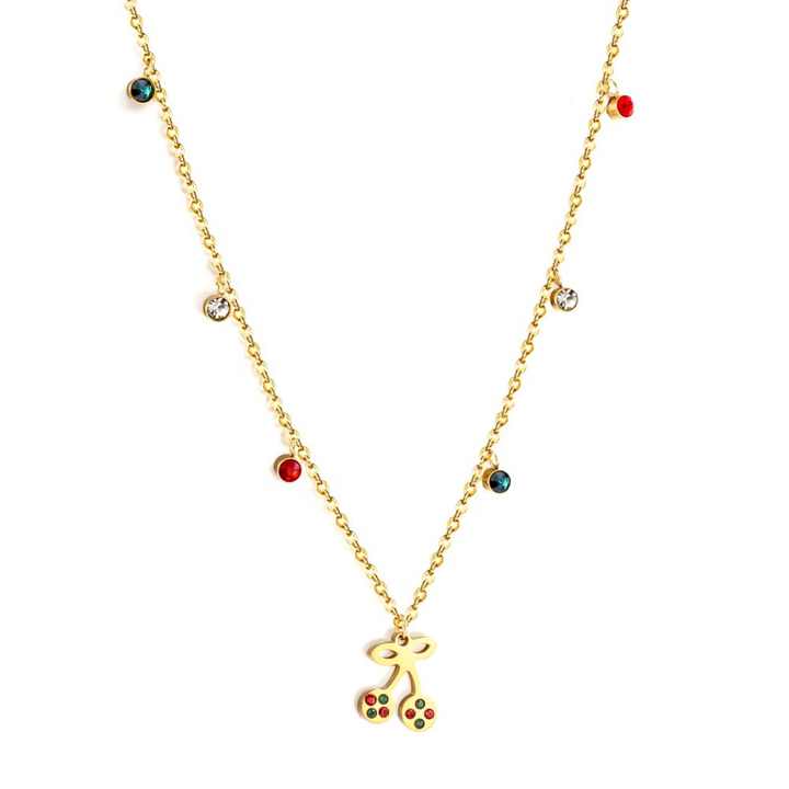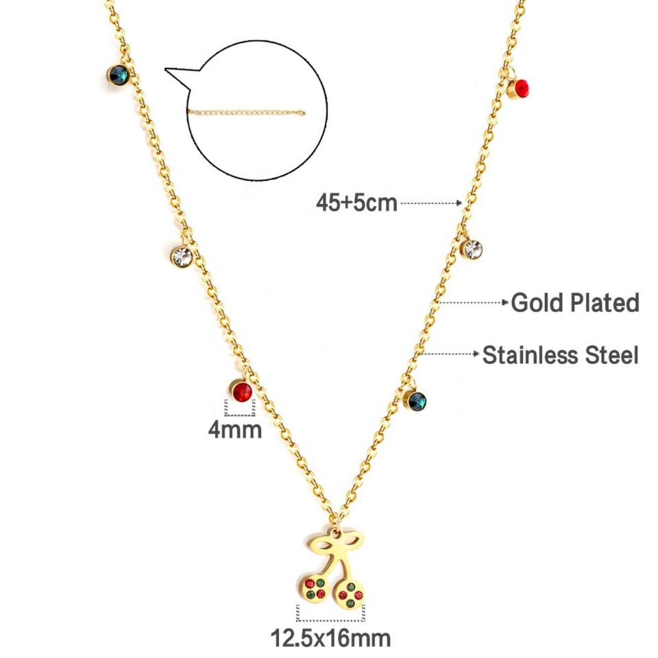 สร้อยคอเชอร์รี่ประดับเพทายหลากสีสัน โรแมนติก สวยงาม ไม่ลอก ไม่ดำ เคลือบทอง 18k ปลอดภัยต่อผิวแพ้ง่าย