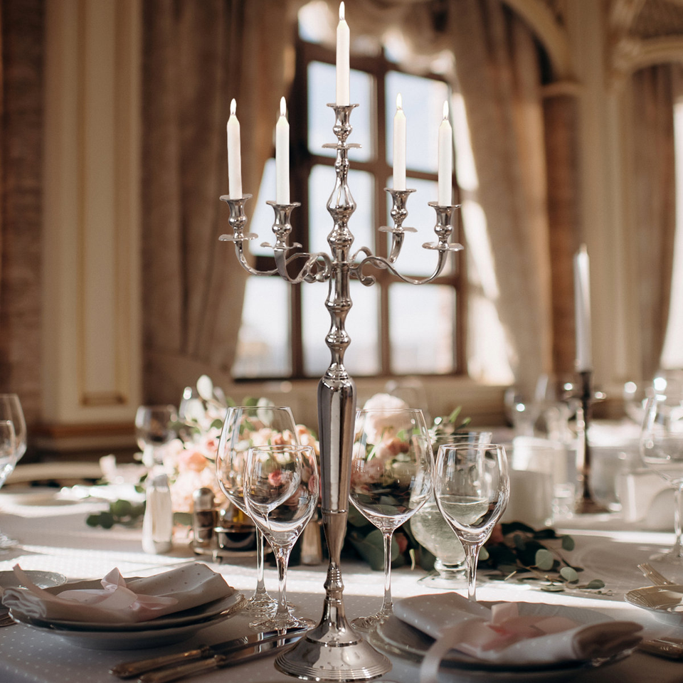 เชิงเทียนอลูมิเนียมคุณภาพสูง 5 แขน ดีไซน์หรูหรา โดดเด่น สำหรับตกแต่งบ้านในวันวาเลนไทน์