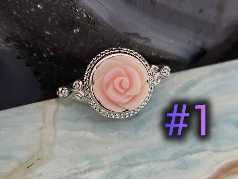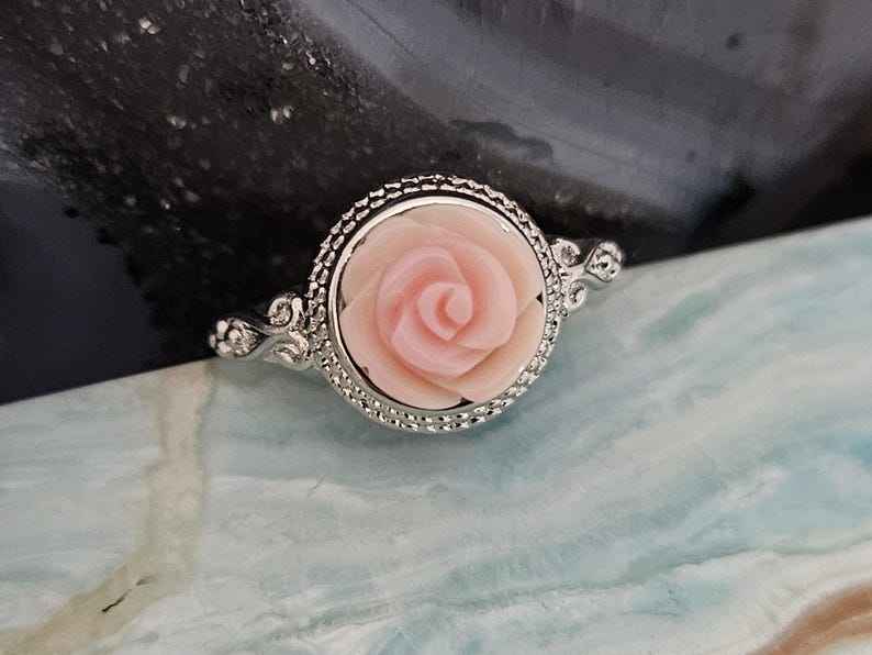 ความงามโรแมนติกที่งดงามดุจดอกไม้บาน แหวนเงินแท้ประดับเปลือกหอยควีนธรรมชาติรูปดอกกุหลาบ พร้อมลวดลายดอกไม้แกะสลัก สำหรับงานแต่งงานและงานหมั้น
