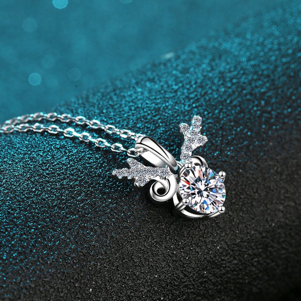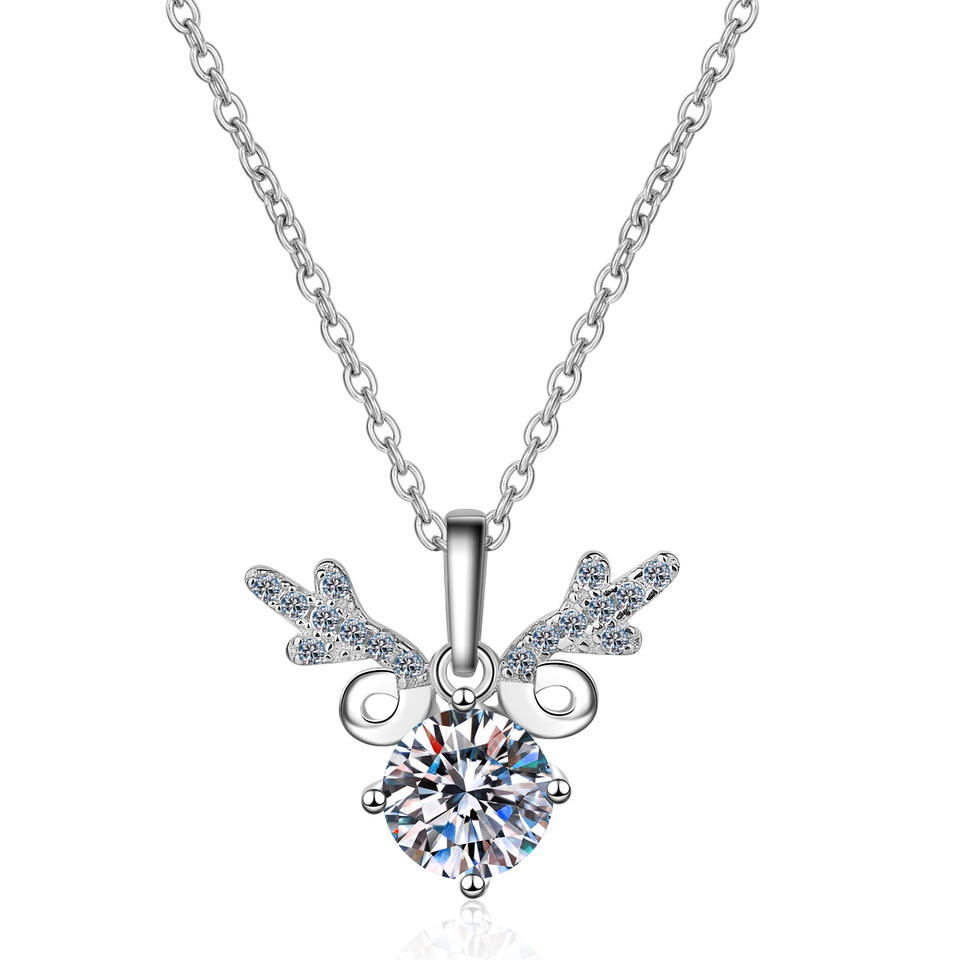 แฟชั่นโรแมนติกเขากวางมอยส์ซาไนต์สร้อยคอเงิน S925ของขวัญวันวาเลนไทน์