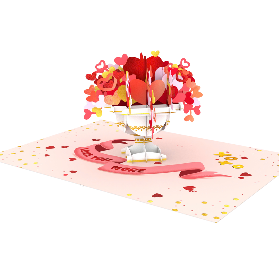 การ์ดป๊อปอัพ 3 มิติ รูปตะกร้าดอกไม้หัวใจแสนโรแมนติก พร้อมซองจดหมาย "รักเธอมากกว่า" ช่อดอกไม้ การ์ดอวยพรทำมือ สำหรับวันวาเลนไทน์