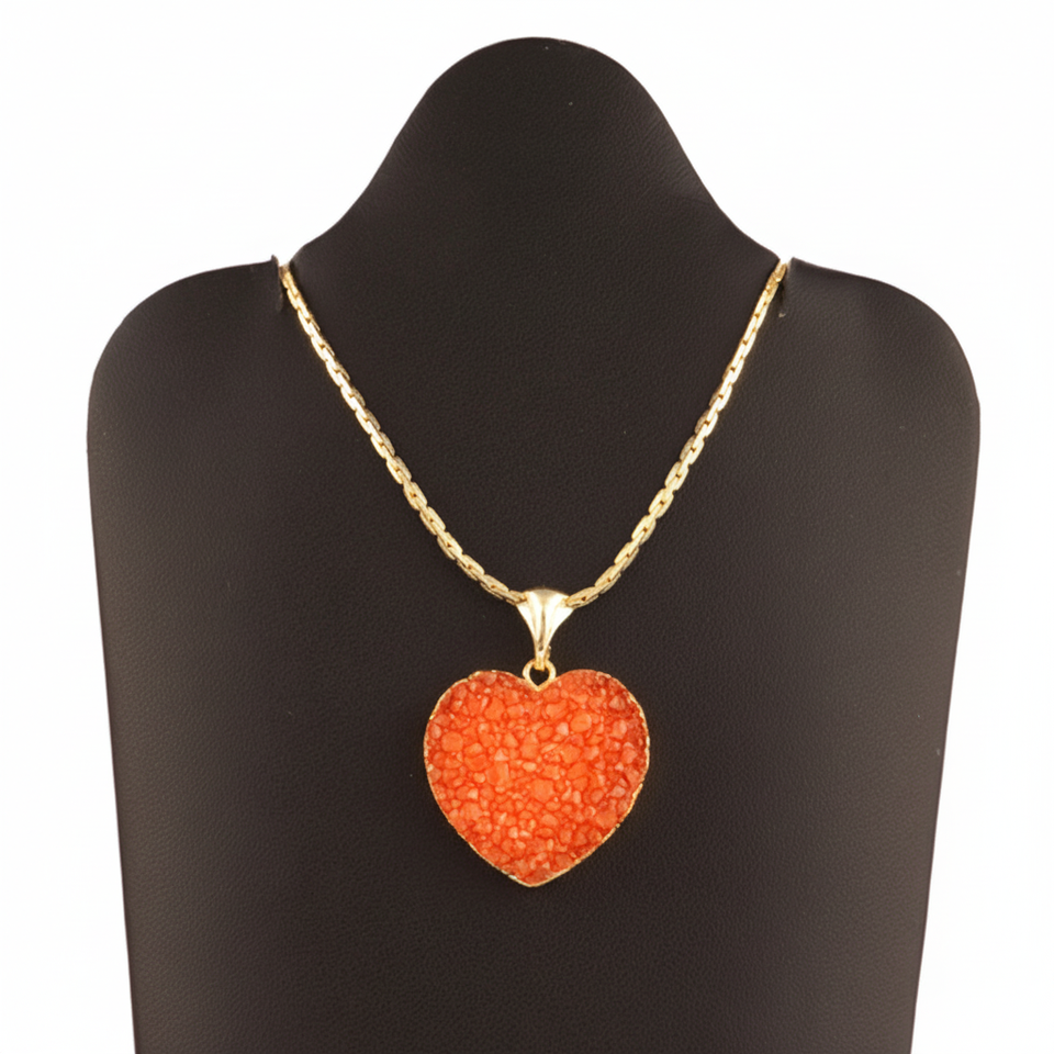 จี้สร้อยคอสไตล์พังก์,รูปร่างหัวใจโรแมนติกน้ำตาลธรรมชาติ Druzy สร้อยคองูจี้สร้อยคอของขวัญสำหรับเธอ