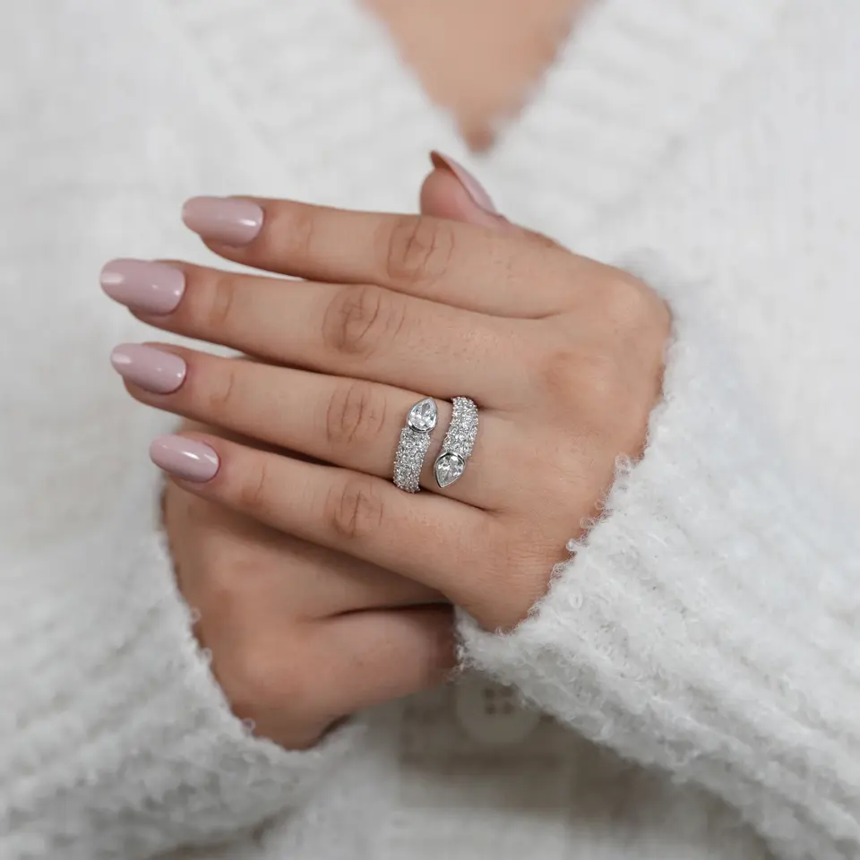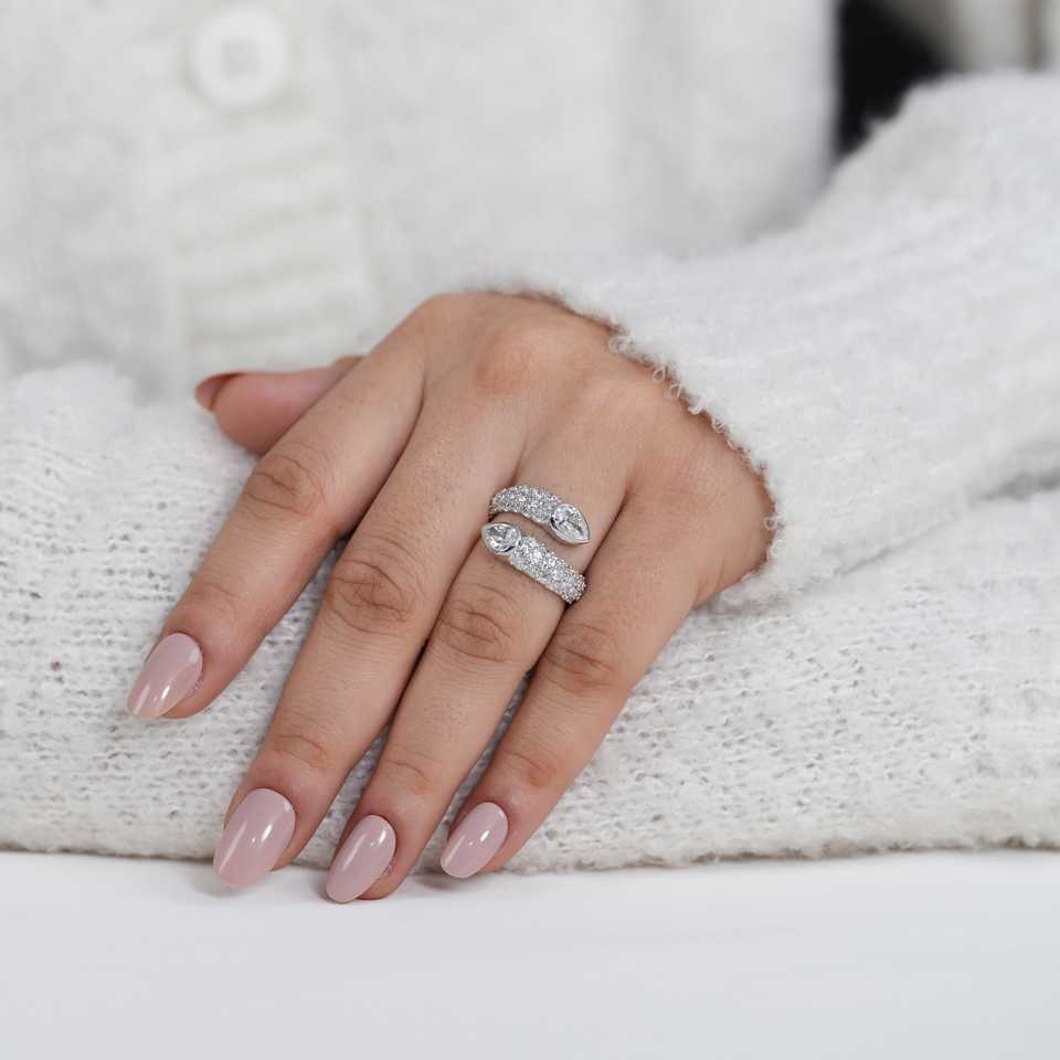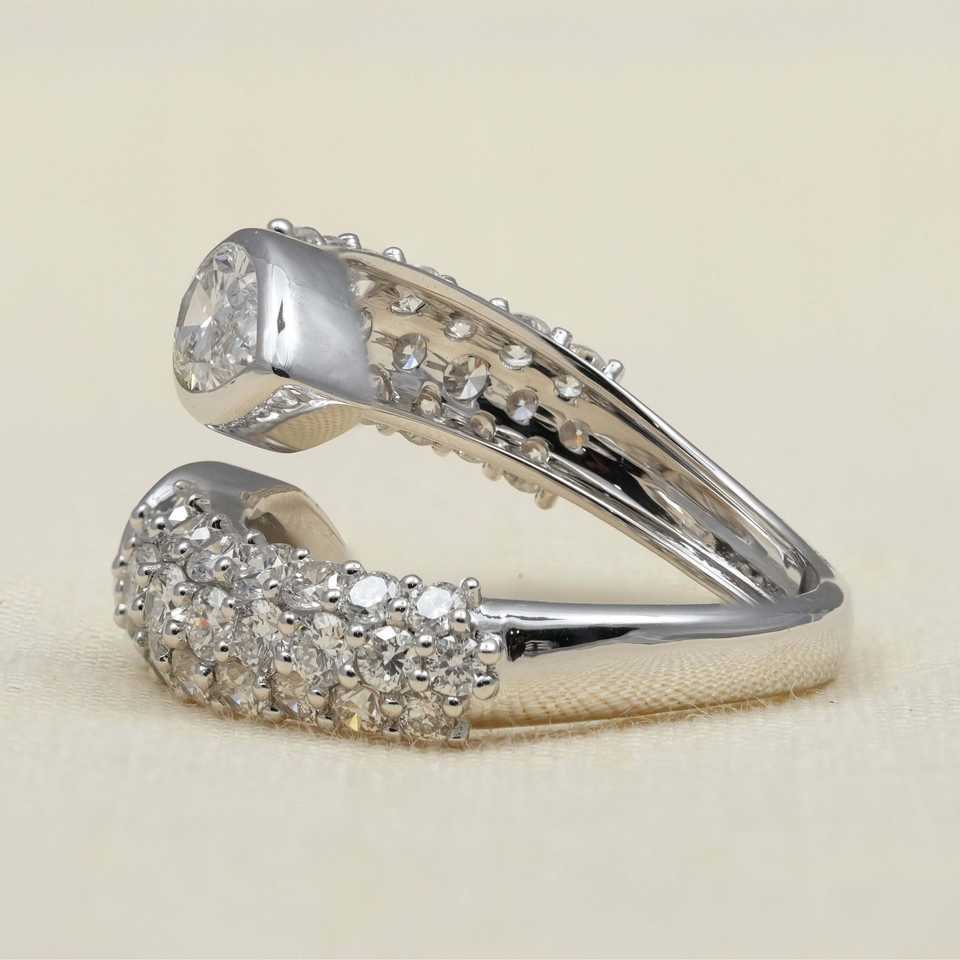 แหวนแต่งงานแบบไขว้ประดับเพชรเพียร์แล็บโกรน 1 กะรัต ทองคำขาว ประดับพลอย รับรองโดย IGI ตัวเรือนแบบฝังขอบ