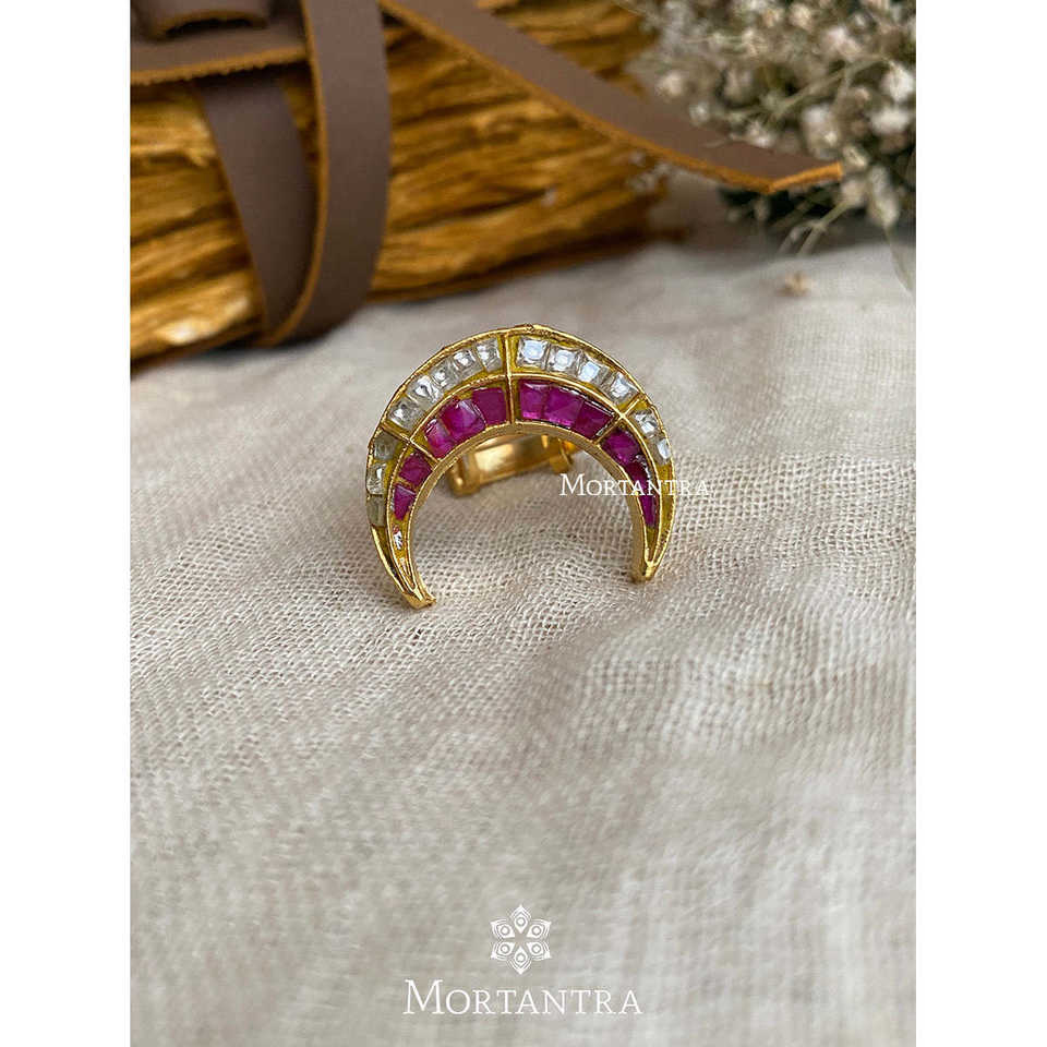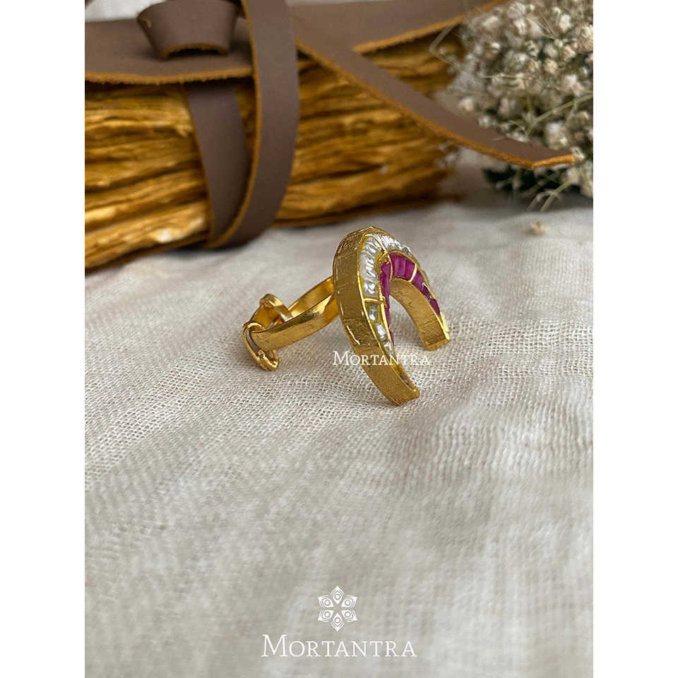 Romantic Pink Gold Plated Brass Thappa Jadau Kundan Zircon Ring TJ-R43WP-18K Micro Insert Inlay