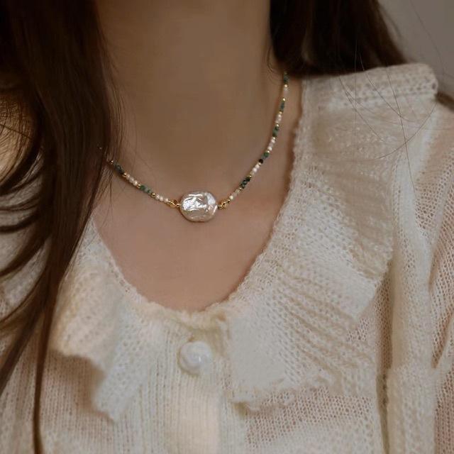 สร้อยคอไข่มุกบาโรกธรรมชาติสไตล์โรแมนติกย้อนยุคแบบซ้อน และชุดกำไลข้อมือหรูหราเบาๆ แฟชั่นเครื่องประดับแบบมิกซ์แอนด์แมทช์