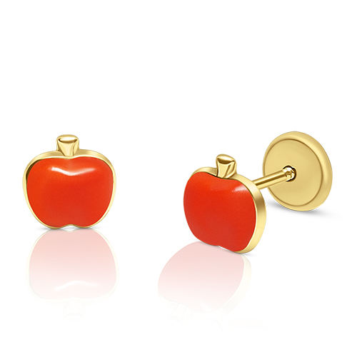 ต่างหูแบบสกรูเคลือบสีเหลืองทองสีแดงโรแมนติกเครื่องประดับรูปทรงเรขาคณิตของแอปเปิ้ลของขวัญวันครบรอบแต่งงานงานปาร์ตี้