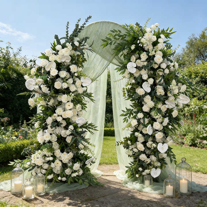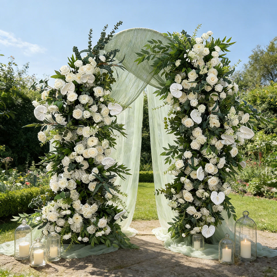 ซุ้มซุ้มแต่งงานประดิษฐ์ทำจากผ้าไหมโรแมนติกสำหรับวันวาเลนไทน์งานคริสต์มาสงานแต่งงานงานอีเวนต์ปรับแต่งขนาดได้