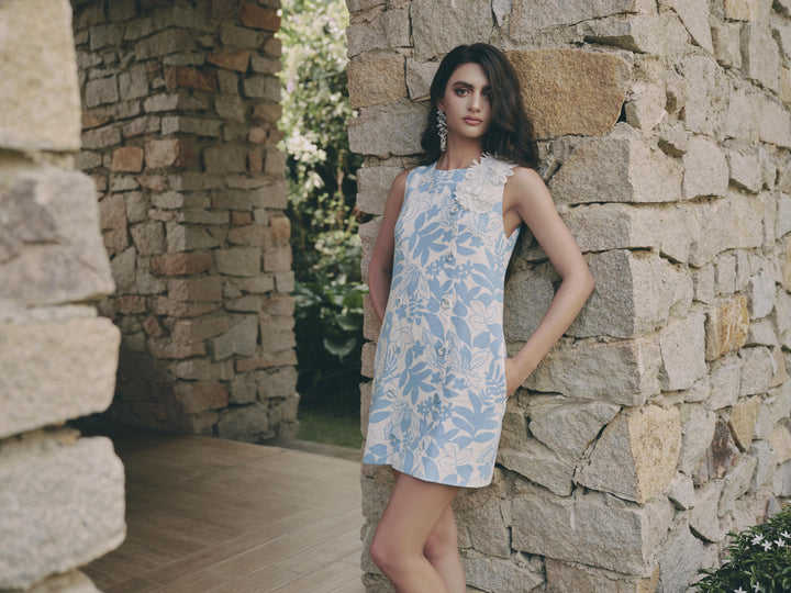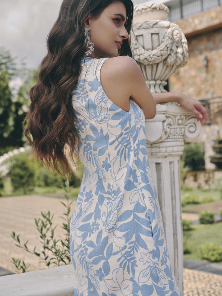 ชุดเดรสลายดอกไม้สีฟ้า