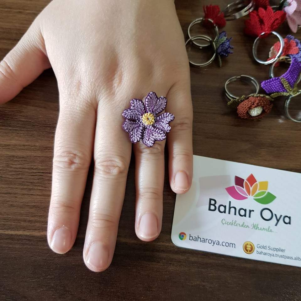 Romantic Vintage Stainless Steel and Silver Simple Ring Gold Plated Inlay with Lila Oyası Menekşe Yüzük Design