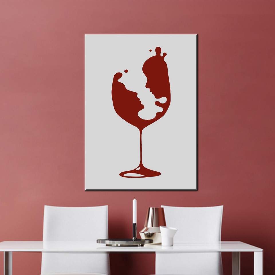 ภาพพิมพ์บนผ้าใบคู่รักถือแก้วไวน์สุดโรแมนติก - ภาพพิมพ์ความรักแบบนามธรรมสมัยใหม่ ห่อหุ้มอย่างดี