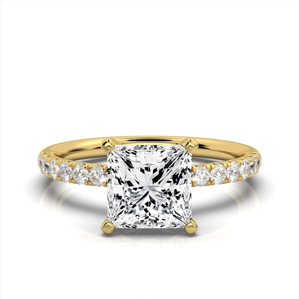 แหวนหมั้นทอง14K สำหรับผู้หญิงโรแมนติกสไตล์คลาสสิกแหวนแต่งงานสไตล์เจ้าหญิงตัด IGI รับรองช่างฝีมือ