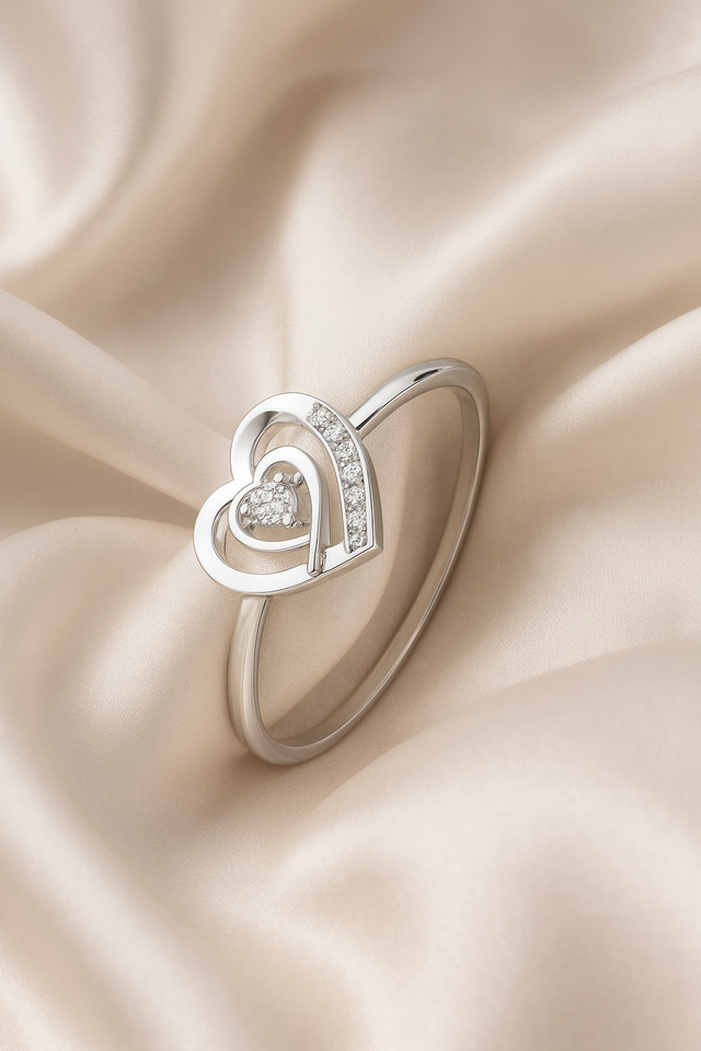 แหวน925เงินสเตอร์ลิงประดับเพชรรูปหัวใจคู่โรแมนติกสำหรับผู้หญิงสำหรับงานครบรอบหรือชุดใส่ในสำนักงานของขวัญเครื่องประดับชั้นดี